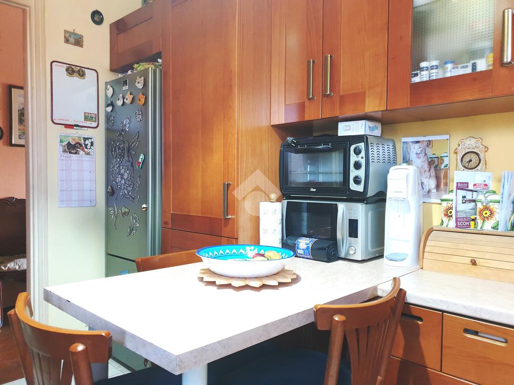 Nel cuore della località di Arnate, a Gallarate, è disponibile un appartamento situato all'ultimo piano di un edificio costruito negli anni settanta.